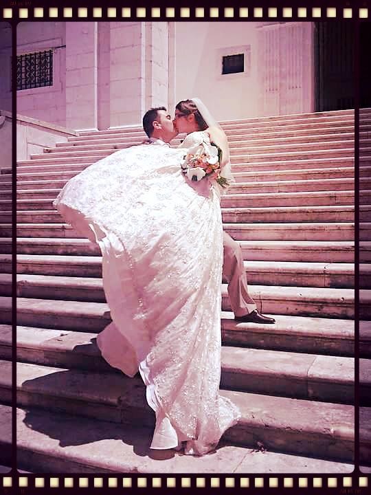 E foi assim à 5 anos atrás Vesti me a rigor, calçei uns lindos sapatos de brilhantes, coloquei a minha coroa e fui... Dar o nó! Se foi um dia feliz? Sim, foi o 2o dia mais feliz da minha vida! Mula, aqui estou eu e o meu modelito nos braços do homem com quem escolhi partilhar a minha vida, a minha cama e a minha velhice.